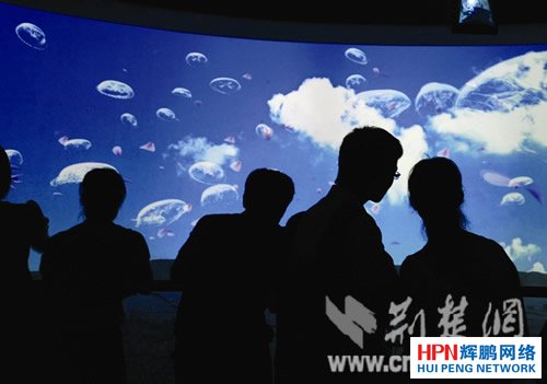 內(nèi)容提要: 圖為:湖北館內(nèi)的桃花水母是用高科技展示的光電魅影 記者佟建國(guó) 世博湖北館中,科技展示著古老文明的精粹,展示著現(xiàn)代生活的豐盛,和人們對(duì)未來(lái)生活的美好愿景