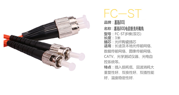 FC-ST光纖跳線為標準的3.0mm直徑光纖跳線,符合并超過 ANSI / TIA / EIA - 568規(guī)范要求。
