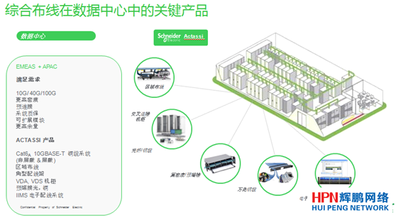 在數(shù)據(jù)中心領(lǐng)域,施耐德電氣可以給客戶提供的解決方案和產(chǎn)品包括精密空調(diào)、不間斷電源、樓宇控制、燈光控制和綜合布線產(chǎn)品等。其中,綜合布線產(chǎn)品在數(shù)據(jù)中心不同的區(qū)域都有相應(yīng)的解決方案和產(chǎn)品,包括一些區(qū)域的布線和交叉的機(jī)柜,端到端的光纖和銅纜產(chǎn)品,以及預(yù)端接光纜的產(chǎn)品,還有電子配件架的產(chǎn)品,都有很好的解決方案和應(yīng)用。