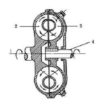 液力耦合器結(jié)構(gòu)注解:1-輸入軸,2-泵輪葉輪,3-渦輪葉輪,4-輪出軸